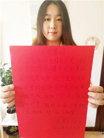 “重温誓词,铭记担当”—— 党支部全体学生党员最后手写入党誓词,重温入党时刻,追忆入党初心,牢记作为学生党员要时刻起到先锋模范带头作用。