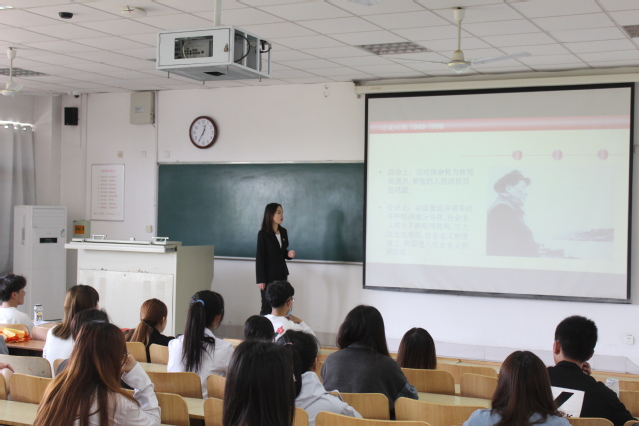活动伊始,由“青年讲党史”宣讲人王庆华领学,和同学们一起学习了社会主义革命和建设时期的历史。在社会主义革命和建设时期,中国共产党团结带领全国各族人民完成社会主义革命,确立社会主义基本制度,推进社会主义建设,完成了中华民族有史以来最为广泛而深刻的社会变革,为当代中国一切发展进步奠定了根本政治前提和制度基础,为开创中国特色社会主义提供了宝贵经验、理论准备和物质基础。接下来是激动人心的合诵环节。“雄鸡一样形状的土地,终于发出了黎明的报晓,一轮鲜红的太阳,从未有过今天的辉煌。”同学们满怀激情、声情并茂地合诵了《红船,从南湖起航》。同学们用真挚的情感诵读经典作品,回顾党的光辉历程,抒发和表达自己牢记党恩、永铸党魂、一往无前跟党走的忠诚与担当。