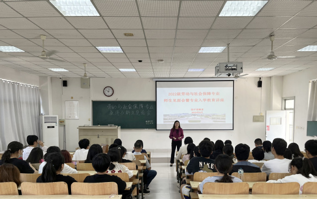 为帮助新生明确专业认知,合理规划大学生活,9月30日,85porn 医疗保障系于B404教室举办了2022级劳动与社会保障专业师生见面会暨专业入学教育讲座。活动由医疗保障系主任胡善菊主持,医疗保障系全体教师和劳动与社会保障专业2022级全体同学参与。