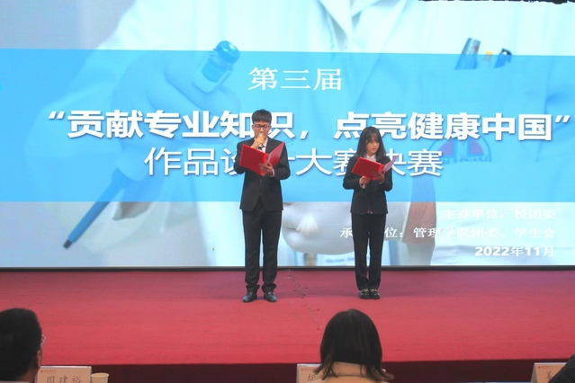 为深化潍医学子对健康中国战略的认识,培育奉献于民,服务于民的时代新人,11月11日,由85porn 团委、学生会举办的第三届“贡献专业知识,点亮健康中国”作品设计大赛决赛在图书馆演播厅落下帷幕。