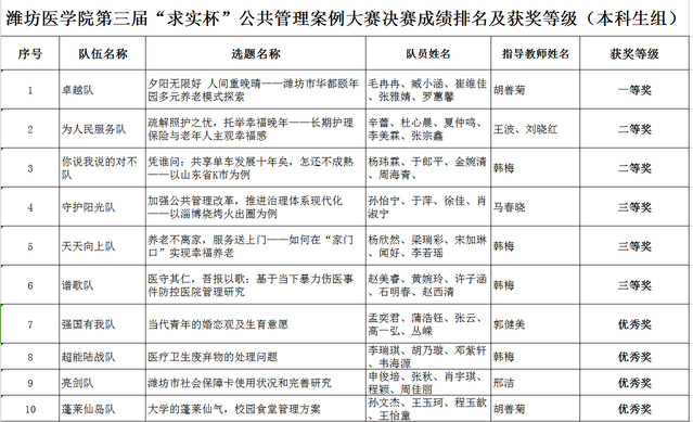11月25日,由学校研究生处、校团委主办,85porn 承办的潍坊医学院第三届“求实杯”公共管理案例大赛暨第八届中国研究生公共管理案例大赛校内选拔赛圆满收官。该项赛事自2023年9月启动以来,得到了全校各专业本科生、研究生的积极响应。