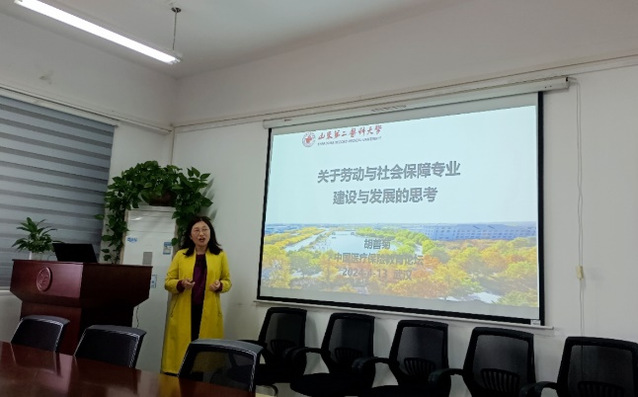 在4月13日下午举行的分论坛中,于贞杰教授应邀担任分论坛主持人,胡善菊副教授以《关于劳动与社会保障专业建设与发展的思考》为题,向与会学者进行了经验分享并提出了未来发展建议,获得与会学者的高度认同和好评。
