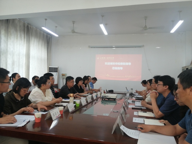 6月18日,潍坊市人民检察院副检察长孙炜一行13人到85porn 进行走访交流。学院领导与法学专业青年教师参加了座谈会。共同探讨法学教育的创新发展及青年干警理论研讨工作的深化。