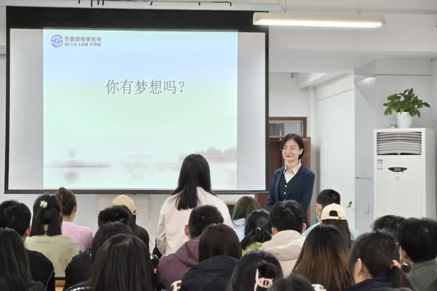 徐律师紧扣“梦想”主题开篇,详述自身由教师转型为执业律师的成长历程,提出“路虽远行则将至”,勉励青年学子要逐梦本心,果断抉择,笃定践行,担当使命。徐律师通过典型案例讲解,引导同学们将理论与实践进行紧密结合。在互动答疑环节,徐律师针对同学们在职业决策与能力培养方面的问题悉心解答,其表现出的职业信念,令在场同学深受触动。讲座结束后,同学们纷纷表示,将以徐律师为榜样,在法律领域精研深耕,不断提升自己的专业素养和实践能力。