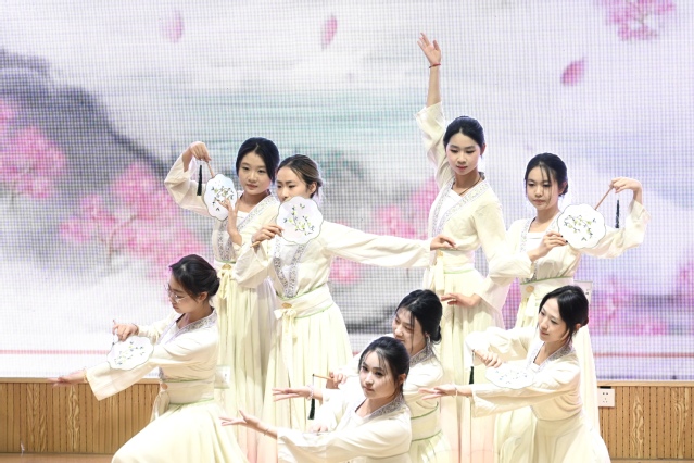 学院党委副书记尹国欣现场宣读2024-2025学年学团先进集体和个人表彰决定,学院领导为获奖学生代表颁发证书,勉励大家勇做人生的主角,在新学年再创佳绩。在随后的晚会中,乐队开场曲《火车日记》以激昂旋律点燃全场。歌曲《我怀念的》《今天》《知己》深情演绎,唤起青春与友情的共鸣。合唱《黄河大合唱》《如愿》《百年》气势磅礴,展现了民族精神与百年奋斗的辉煌。舞蹈《芒动扇影,逐韵惊鸿》《body》《清庭云月》刚柔并济,彰显青年蓬勃朝气。朗诵《我是青年》铿锵有力,道出管院学子不负韶华、勇担使命的坚定信念。展演过程中穿插的三轮抽奖环节将现场氛围一次次推向高潮,师生互动间拉近距离,让晚会满溢温情与惊喜。